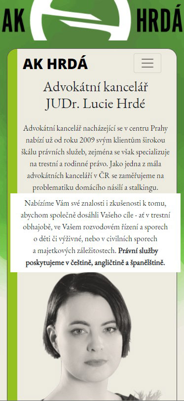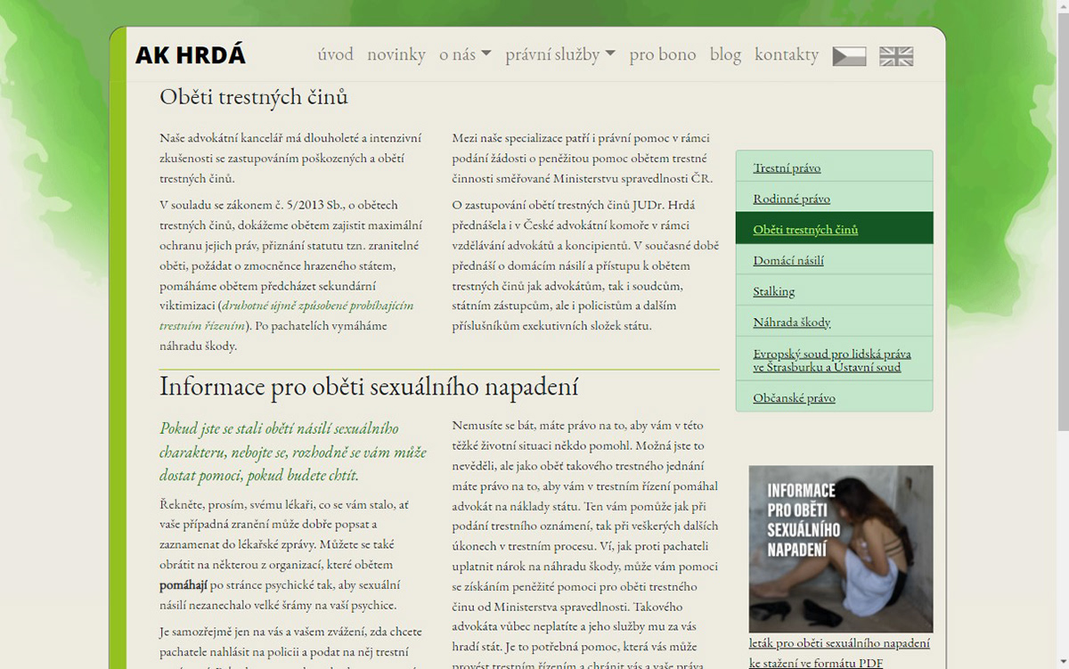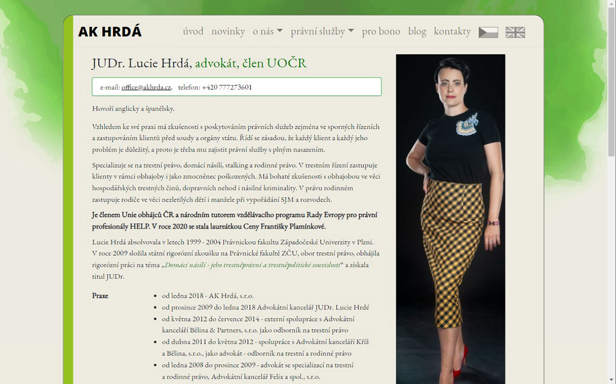 web design pro advokátní kancelář Hrdá (www.hrda.cz) web pages for Law office Hrdá